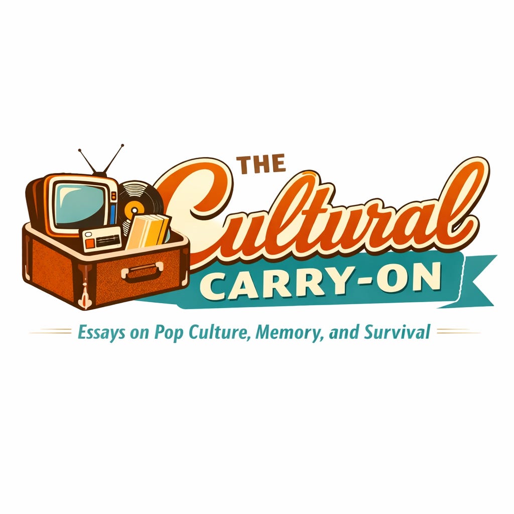 The Cultural Carry-On is a pop culture criticism project exploring the movies, TV, objects, and media that shaped how we think, feel, and survive. It treats nostalgia as evidence, culture as curriculum, and memory as something we carry—whether we mean to